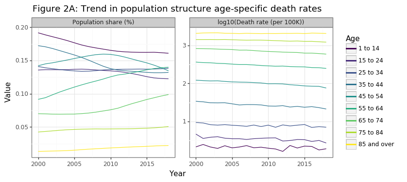 ggtitle("Figure 2A: Trend in population structure age-specific death rates"))